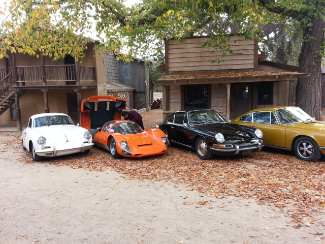 and cameras surrounded an extraordinarily stunning orange Porsche 906. From Ojai we were to head back towards LA, ending at Paramount Ranch, & I decided the best way to continue the journey would be to follow the orange beastie for as long as my much smaller engine would allow. Fortunately the first couple of miles were through the town, so my acceleration requirements were limited; but no sooner did we reach the open road again and VROOM, in a throaty explosion of horsepower, it disappeared.